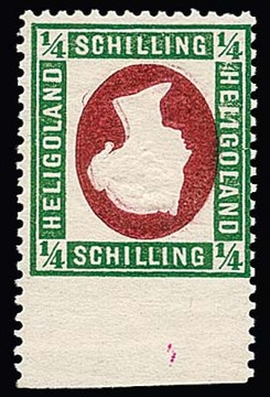 1/4 Sch. grün/rot, der Hamburger Neudruck gezähnt mit kopfstehendem Mittelstück, einmal vom Rand, unten ungezähnt
