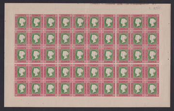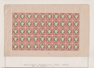 1/4 Sch., Berliner Neudruck von 1875 im kompletten postfrischen Bogen (nur im Rand etwas angetrennt und dort gestützt)