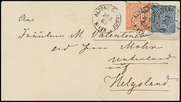 Incoming-Mail, 1869, NDP-Aufbrauchs-Ganzsache 2 Gr. auf Preußen 2 Sgr., nebst 1/2 Gr. orange, mit K1 "Altonaer Bahnhof" nach Helgoland gelaufen, innen auch noch Brieftext im Umschlag, Kabinett