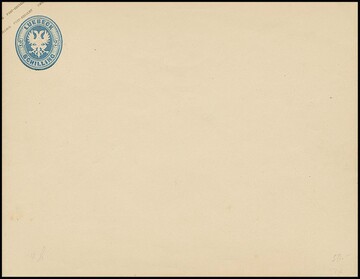 Ganzsachen 1/2 Sch. (2), 1(2), 2 (R!), 2 1/2, 4 Sch. sowie nächste Ausgabe U11(2), U12(2) und U13, alle als ungebrauchte Kabinettcouverts, Mi. 920,-. dazu U6 als Ortscouvert gelaufen mit zu schwachem Stempel, um sicher als echt bestätigt zu werden (Mi. 1400,-, "wie besehen")