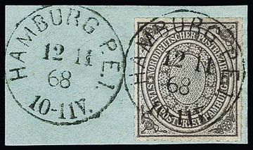 1/2 Sch. lilabraun, Hamburger Stadtpostmarke, zwei Luxusbriefstücke mit idealen K1 "Hamburg P.E. 1" bzw. "P.E. 3"
