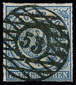2 Gr. blau, Kabinettstück mit klarem nachverw. Sachsen-NS "53" (Meerane)