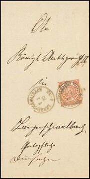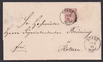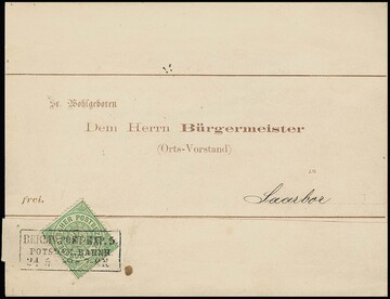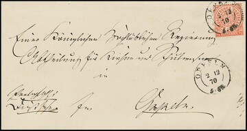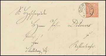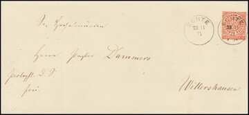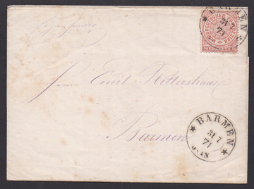 1/2 Gr. orange einzeln auf leicht unfrischem Ortsbrief aus Barmen, 31.7.71, adressiert an den bekannten Lyriker Emil Rittershaus, u.a. Verfasser des Westfalen-Liedes