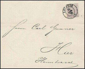 1/4 Gr. rotviolett, Prachtstück auf gef. Ortsbrief mit K2 "Leipzig", Porto für Partiebrief ab Auflieferung von 60 Briefen, hier handelte es sich zwar um eine Drucksache ("Circulair"), im vorliegenden Falle war aber die Versendung des Partiebriefs immer noch billiger (1/4 statt 1/3 Gr.), ex Spalink