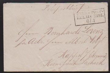 Feldpost, (1870), Couvert aus La Fere von einem Angehörigen des Sächs. Inf.-Rgt. Nr. 101 nach Chemnitz mit Ra3 "Feld-Post-Relais No. 87" (Feuser 200,-)