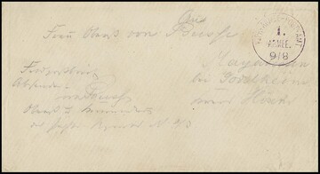 Feldpost, (1871), blauer Ra3 "K. Pr. Feld-Post-Relais No. 81" auf Damencouvert, sowie Briefhülle mit zusätzlich rotem L1 "XVIII. A.-C." und "E" nach Berlin