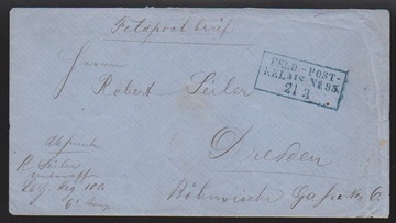 Feldpost, (1871), blaues Couvert mit gutem blauem Ra3 "Feld-Post-Relais No. 85" nach Dresden