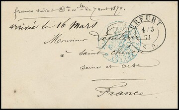 Kriegsgefangenenpost nach Frankreich, 1871, sieben Briefe (teils typische Gebrauchsmgl.) aus versch. Orten, Altdamm, Coblenz, Cosel, Landsberg a.d.W., Erfurt, Stettin und Magdeburg, diverse Portofreiheitsstempel