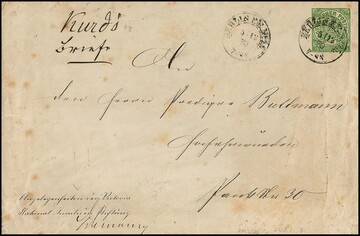 Privat-Ganzsache 1/3 Gr. grün der Victoria-National-Invaliden-Stiftung, 186:122mm, gebraucht als Ortscouvert 1870 in Berlin, mit kleinen Gebrauchsmängeln