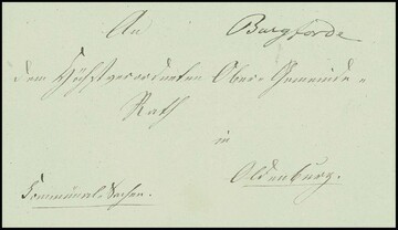 "Burgforde", "Bockhorn", "Hepelüne", "Strohausen", ca. 1830-45, vier Briefhüllen je mit hs. Aufgabe