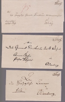 "Schwey", (1820), drei Briefe mit handschriftlichen Aufgaben, einmal in Verbindung mit zartem L1 "Ovelgönne"