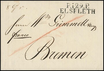 "Elsfleth", 1811, seltener L2 "P.129.P. ELSFLETH" sehr klar auf Brief mit Inhalt aus Bramsche nach Bremen, ex Dr. Marx, sign. Kruschel (Zuschlag 10. Kruschel-Auktion 1978 DM 1800,- + Aufg.)