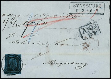 "1428", da nicht leserlich, die Nummer offensichtlich postalisch handschriftlich eingesetzt, nebst Ra2 "Stassfurt", klar auf Paketbegleitbrief (Falte ausserhalb) mit 2 Sgr., rs. kleiner Briefausschnitt