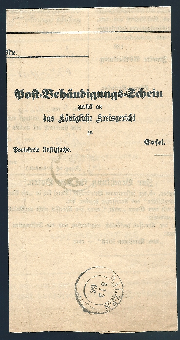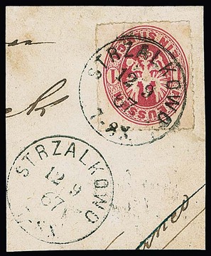 "Strzalkowo", seltener neuer Posen-Grotesk-K1 klar zweifach auf Prachtbriefstück 1 Sgr.