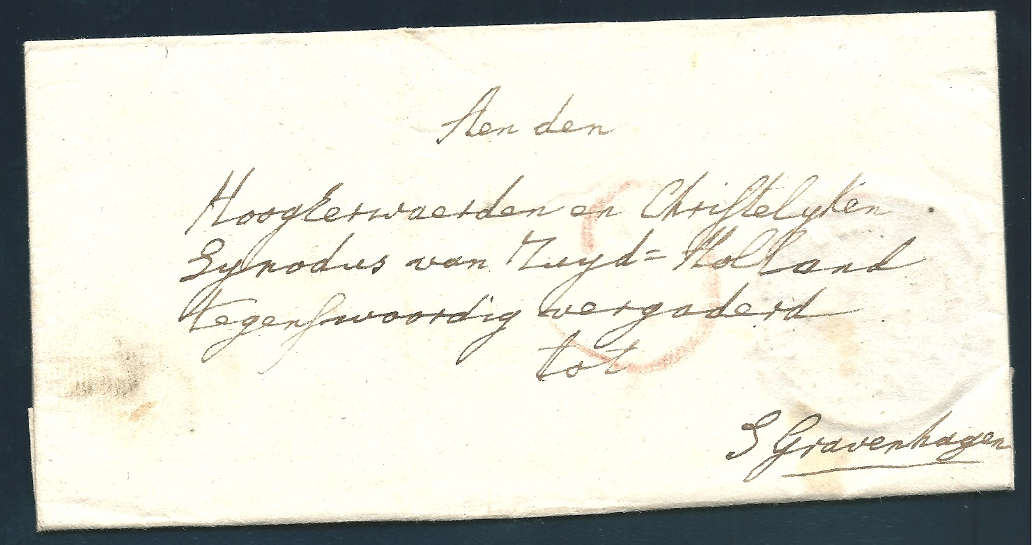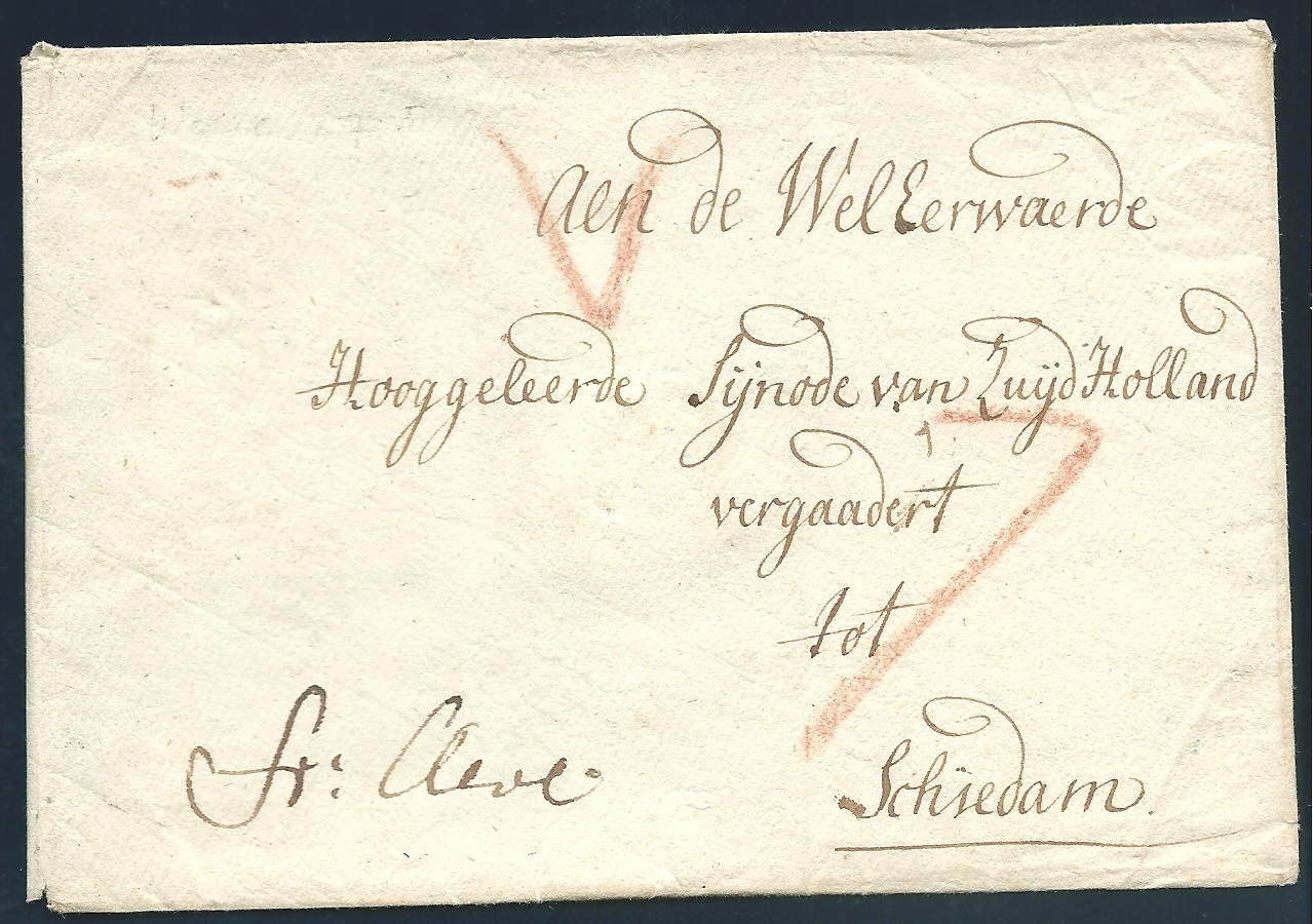 "Wallach (bei Wesel)", 1771, schön gesiegelter Brief der südholländischen Kirche nach S. Gravenhage/Holland