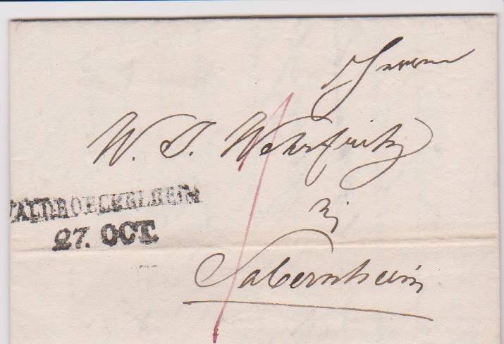 "Waldböckelheim", 1840, seltener Rheinland-L2 klar auf Brief mit Inhalt