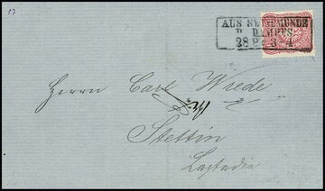 "Swinemünde", (1875), klarer Ra3 "AUS SWINEMÜNDE P. DAMPFS." auf rs. unkpl. Brief mit 10 Pfge. Deutsches Reich