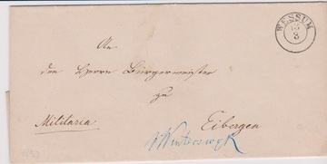 "Wessum", (1853), vorphil. K2 auf Grenzrayon-Militariabrief ins holländische Winterswyk