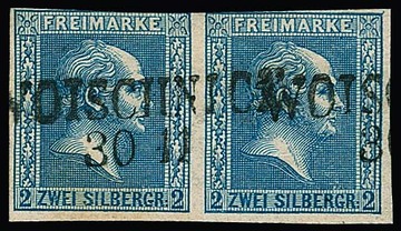 "Woischnick", seltener vorphil. L2 als Entwertung auf Paar 2 Sgr. blau (oben ber.), sign. Brettl