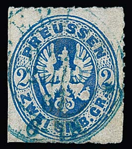 "Berlin H.P.A.", der blaue K2 des Hofpostamtes mit Sternen zentrisch auf 2 Sgr. (kl. Mgl.), KHBW 49/1500 P.