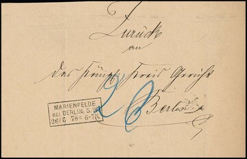 "Marienfelde bei Berlin, S.W.", 1878, sehr seltener Ra3 klar auf Postbeh.-Brief, KHBW V128, 3000 P.