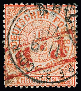"Berlin P.E. 36 Goerlitz Bahnhof", sehr seltener schwarzer K1, nebst rotem "P.D.", auf NDP 1/2 Gr. (min. Mgl.), nur wenige Exemplare bekannt, KHBW "L.P."