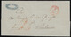 "Stolp i. Pommern F.", 1868, roter Franko-K1 auf vier Briefen, u.a. seltener "Auslagen"-Paketbegleitbrief