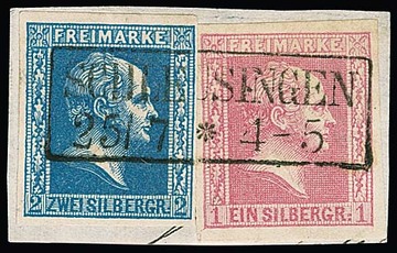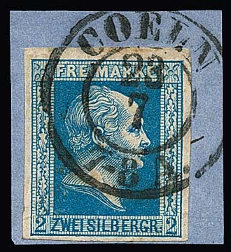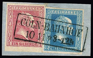 2 Sgr. blau in Mischfrankatur mit Unterrandstück 1 Sgr. rosa auf Kabinettbriefstück mit vollem Ra2 "Cöln Bahnhof", sign. Pfenninger