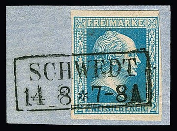 2 Sgr. hellblau, Luxusbriefstück mit vollem Ra2 "Schwedt", sign. Pfenninger