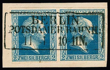2 Sgr. blau im Paar auf schön gestempeltem Kabinettbriefstück mit geradem Ra3 "Berlin Potsdamer Bahnh.", Fotoexp. Flemming