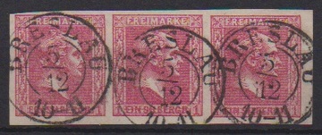 1 Sgr. rosa und karmin, je Kabinett-Dreierstreifen, einmal Plattenfehler "SICBER", einmal vom Rand
