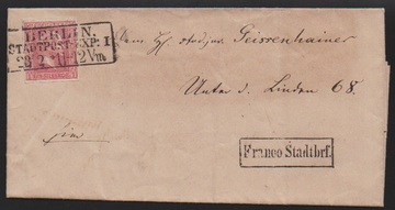 1 Sgr. dunkelrosa einzeln auf Pracht-Ortsbrief mit Ra3 "Berlin Stadtpost-Exp. I" und Neben-Ra1 "Franco Stadtbrf."
