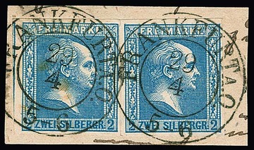 2 Sgr. hellblau im Paar auf Kabinettbriefstück mit K2 "Frankfurt a.O.", sign. Drahn, R.F. Engel