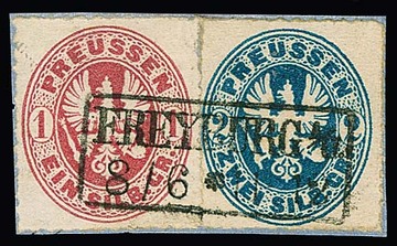 1 Sgr. rosa und 2 Sgr. preußischblau auf Kabinettbriefstück mit vollem Ra2 "Freyburg a.O."