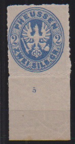 2 Sgr. graublau, postfrisches Kabinett-Unterrandstück mit Rz. "5"