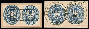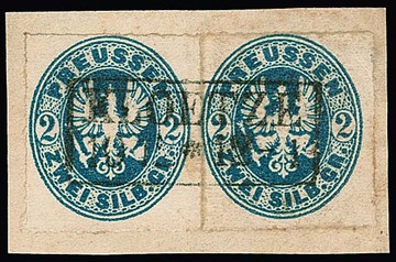 2 Sgr. blau, je Paare auf zwei Luxusbriefstücken, idealer Ra2 "Prüm" bzw. besserer K2 "Langelsberg"