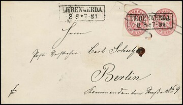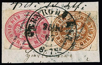 Wappen-Ganzsachen-Ausschnitte 1 Sgr. rosa und 3 Sgr. ockerbraun, je viereckig, auf Prachtbriefstück mit K2 "Gernrode i. Anh." (später Aufbrauch 20.12.67), Mi. 150,- +