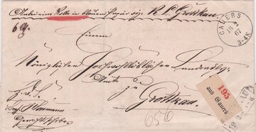 "Gauers", aus der Preußenzeit seltener später Grotesk-K1 klar auf Paketbegleitbrief 1867