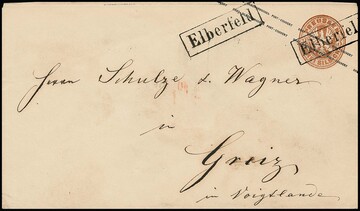 "Elberfeld", guter Bahnpost-Stations-Ra1 als alleinige Entwertung und Aufgabestempel auf Wappen-Ganzsache 3 Sgr.