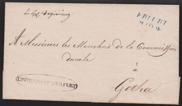 "Erfurt", 1813, seltener blauer Schrägschrift-L2 auf Brief nach Gotha, Feuser 890-6/200,-