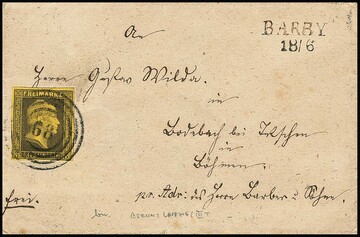 "68" nebst vorphil. L2 "Barby" (dieser etwas nachgezogen) klar auf Brief mit perfekter 3 Sgr.