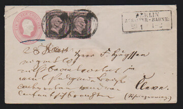 "105" nebst Ra3 "Berlin Anhalter-Bahnh." auf Ganzsache 1 Sgr. rosa mit ZuF Paar 1 Sgr. nach Cleve