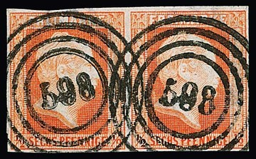 "523" (Gräfenhaynichen) klar auf Paar 2 Sgr. (re. Marke Eckbug)
