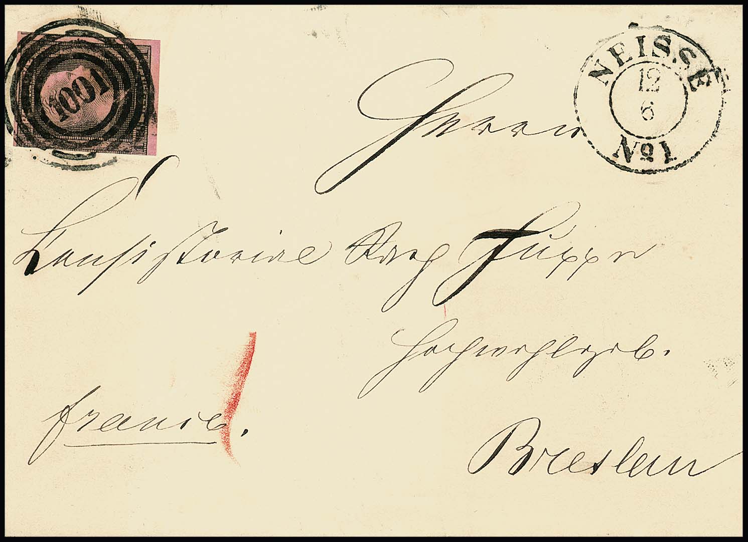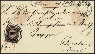 "1001" nebst Ausgabe-K2 "Neisse No. 1" bzw. "Neisse No. 2" als Aufgabestempel (!) auf zwei Briefen aus gleicher Korrespondenz je mit einseitig ber. 1 Sgr.