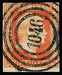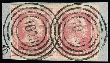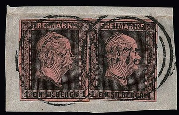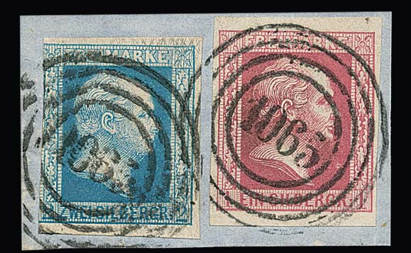 "1065" (Nordhausen) klar auf Briefstück mit 1 Sgr. karmin und 2 Sgr. mattblau (links ber.)