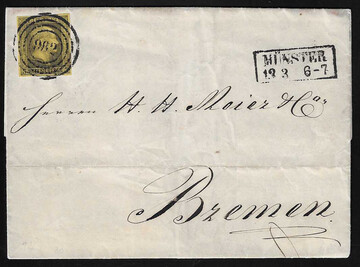 "982" nebst Ra2 "Münster" auf zwei Faltbriefen je mit Kabinettstück 2 bzw. 3 Sgr.
