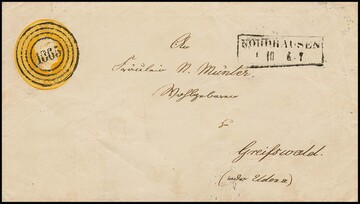 "1065" nebst Ra2 "Nordhausen" klar auf (min. knittriger) Kopf-Ganzsache 3 Sgr.