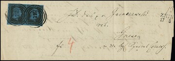 "1716" nebst L2 "Znin" klar auf gef. Post-Ins.-Doc. mit Kabinettpaar 2 Sgr. schw./blau