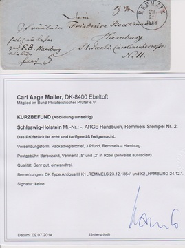 "Remmels", K1 1864 auf interessant austaxiertem Paketbegleitbrief nach Hamburg, Fotoexp. Möller