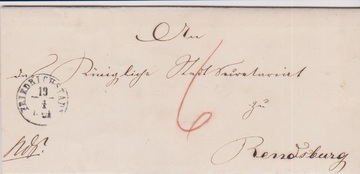"Ratzeburg", 1838, L1 auf kpl. Brief mit Inhalt, teils gedruckte Verordnung der Regierung mit eigenhändiger Unterschrift des Grafen zu Rantzau, ArGe Nr. 14, 600,-